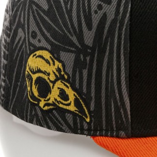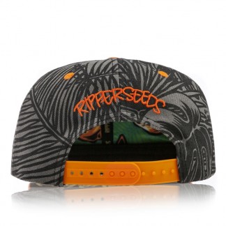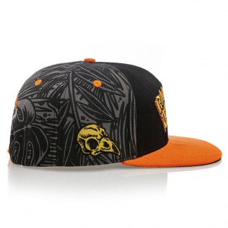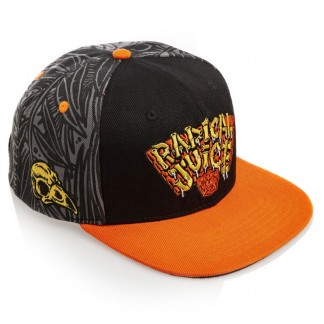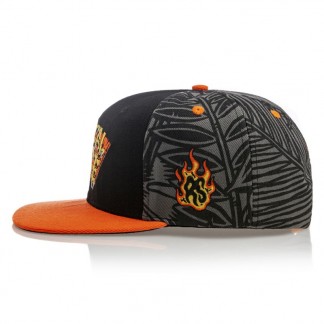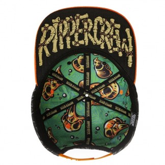 Кепка Radical Juice оранжево-черного цвета. С зеленой внутренней подкладкой и изображениями.