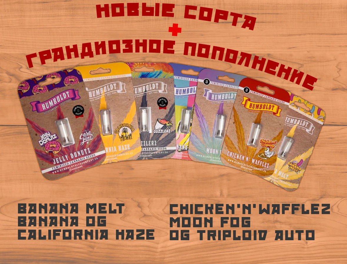 Мы привезли очень много сортов от Humboldt Seed Company, которых еще не было у нас на витрине и всем полюбившийся сорт "Golden Sands"