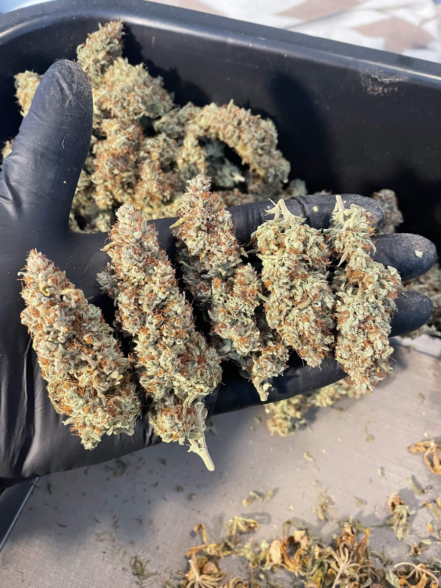Итог: После 14 дней сушки при температуре около 15-16°C и относительной влажности 60% настало время маникюринга и шикарного лимонного запаха. Бутон полон трихов и сверкает, как бриллианты.