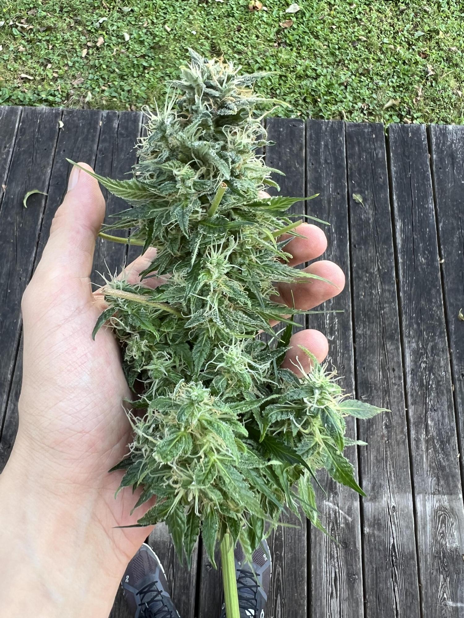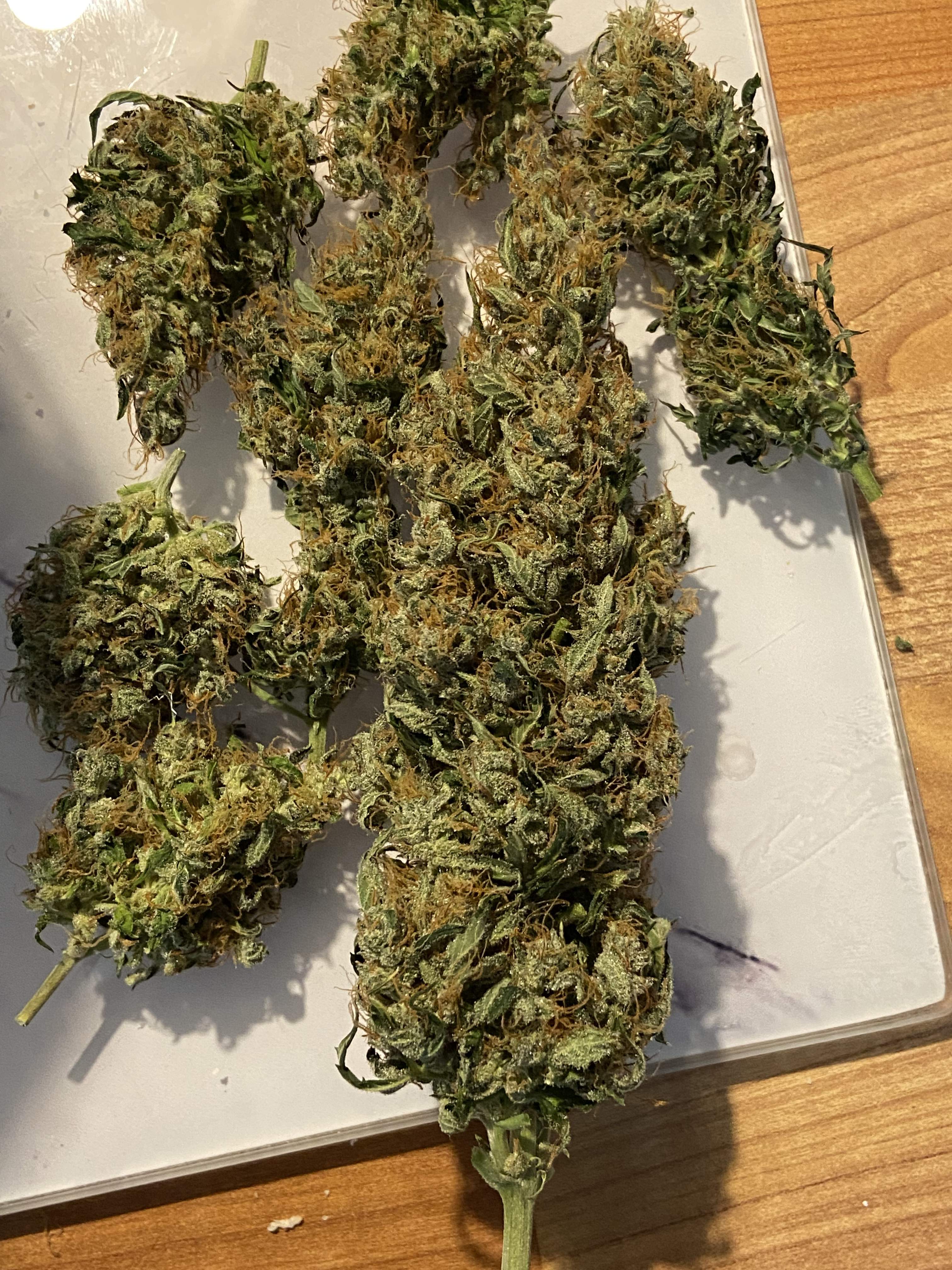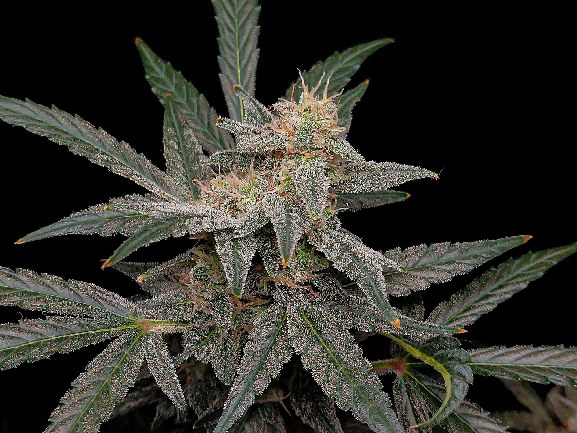 Во время цветения ветви усыпаны массивными, плотными, смолистыми шишками, которые напоминают сативные колы. Обильное производство смолы покрывает бутоны слоем сверкающих трихом, делая их почти белыми на вид, с длинными ярко-оранжевыми пестиками и темно-зелеными сахарными листьями.