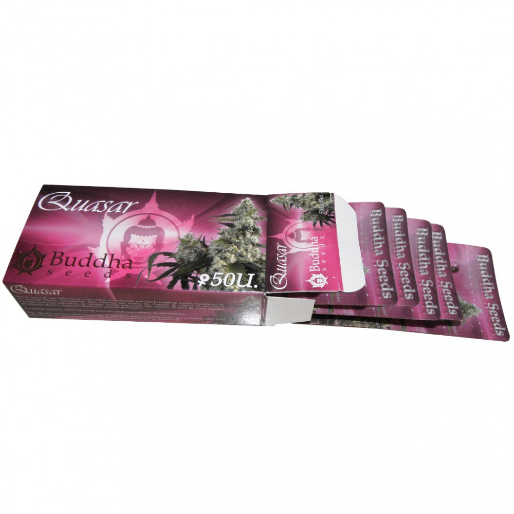 Quasar сорт с равным соотношением свойств Сативы и Индики. Растения этого сорта отличаются крепкими и плотными ветвями, покрытыми смолянистыми соцветиями. Сорт особенно урожайный с быстрым циклом цветения. Вкус ненавязчивый. Мощный эффект со склонностью к эйфории.