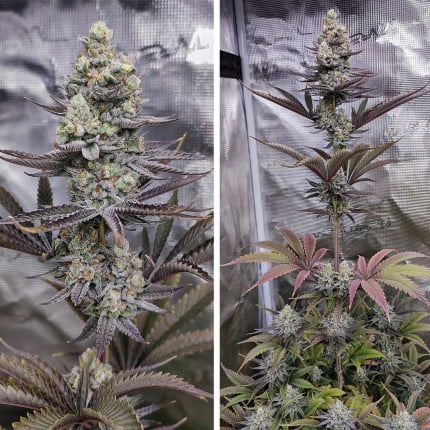 Пройдет всего 9 недель, и оно полностью созреет. Настанет пора собирать урожай, а листья ближе к концу созревания могут потемнеть. Обычно существует 4 фенотипа. Обратите внимание на самый низкий. Пусть на вид куст и невелик, но дело тут вовсе не в размере. Его плотные и сверхмощные шишки тяжелее, чем кажется. Зачастую небольшой шишки, которой казалось бы едва хватит на косячок, достаточно после перемалывания в гриндере на два косяка.