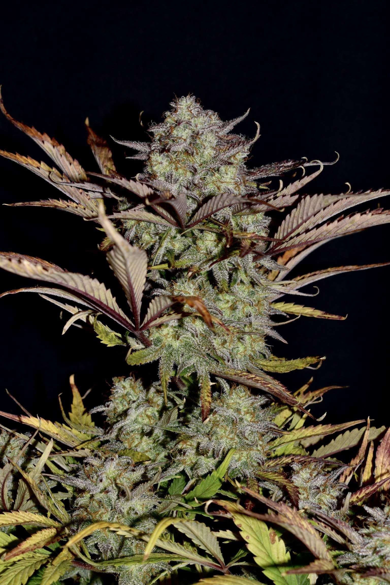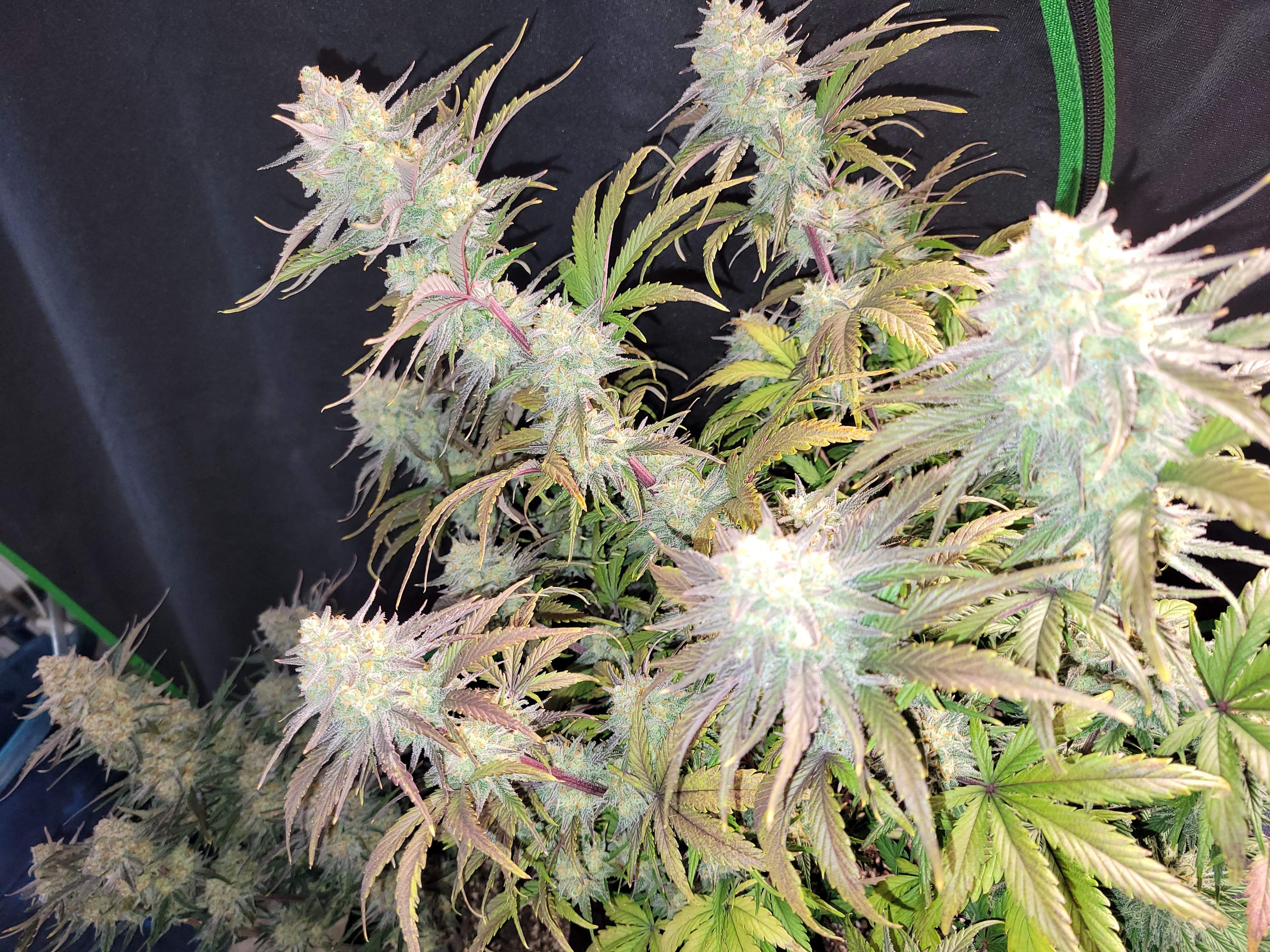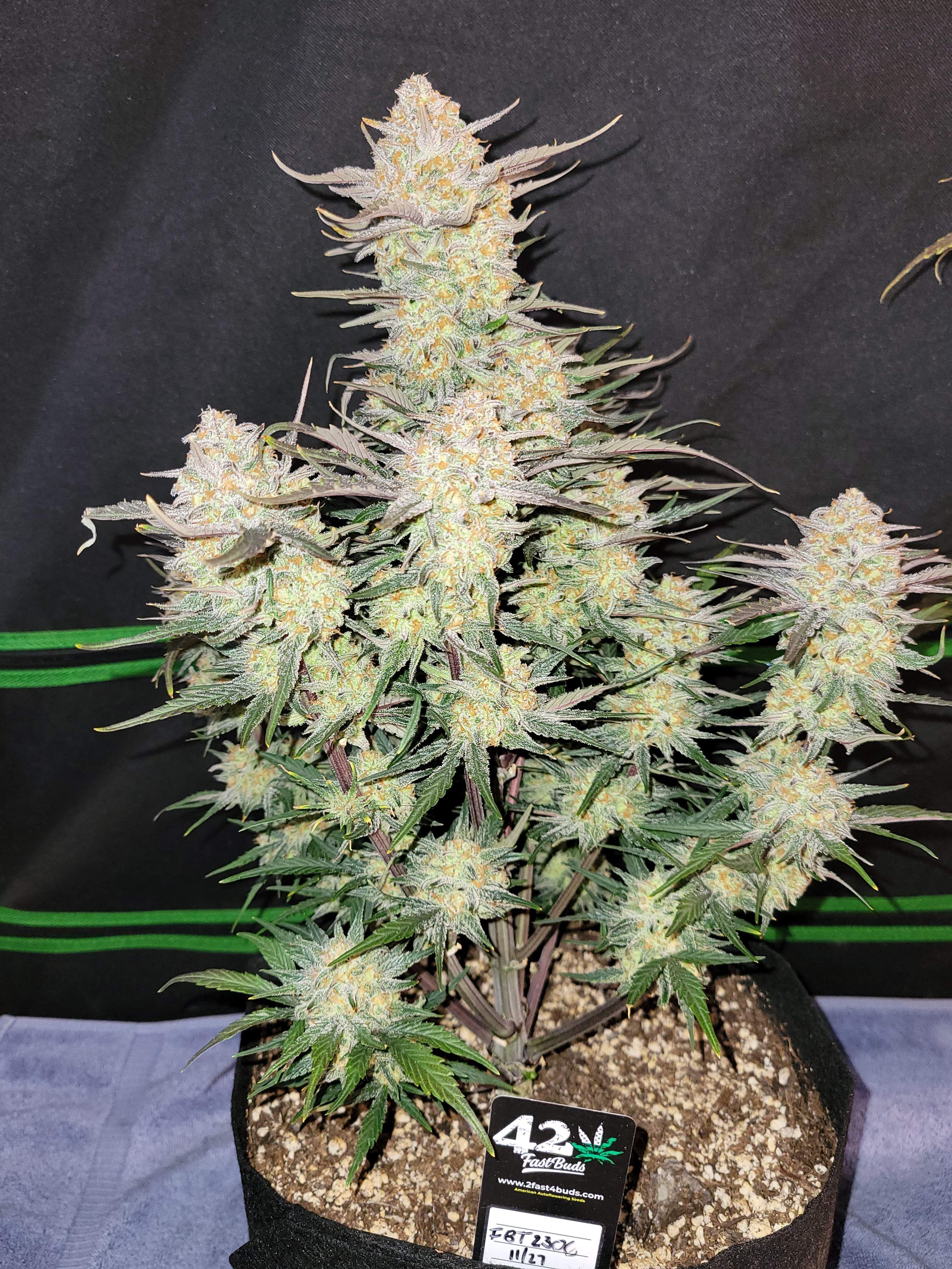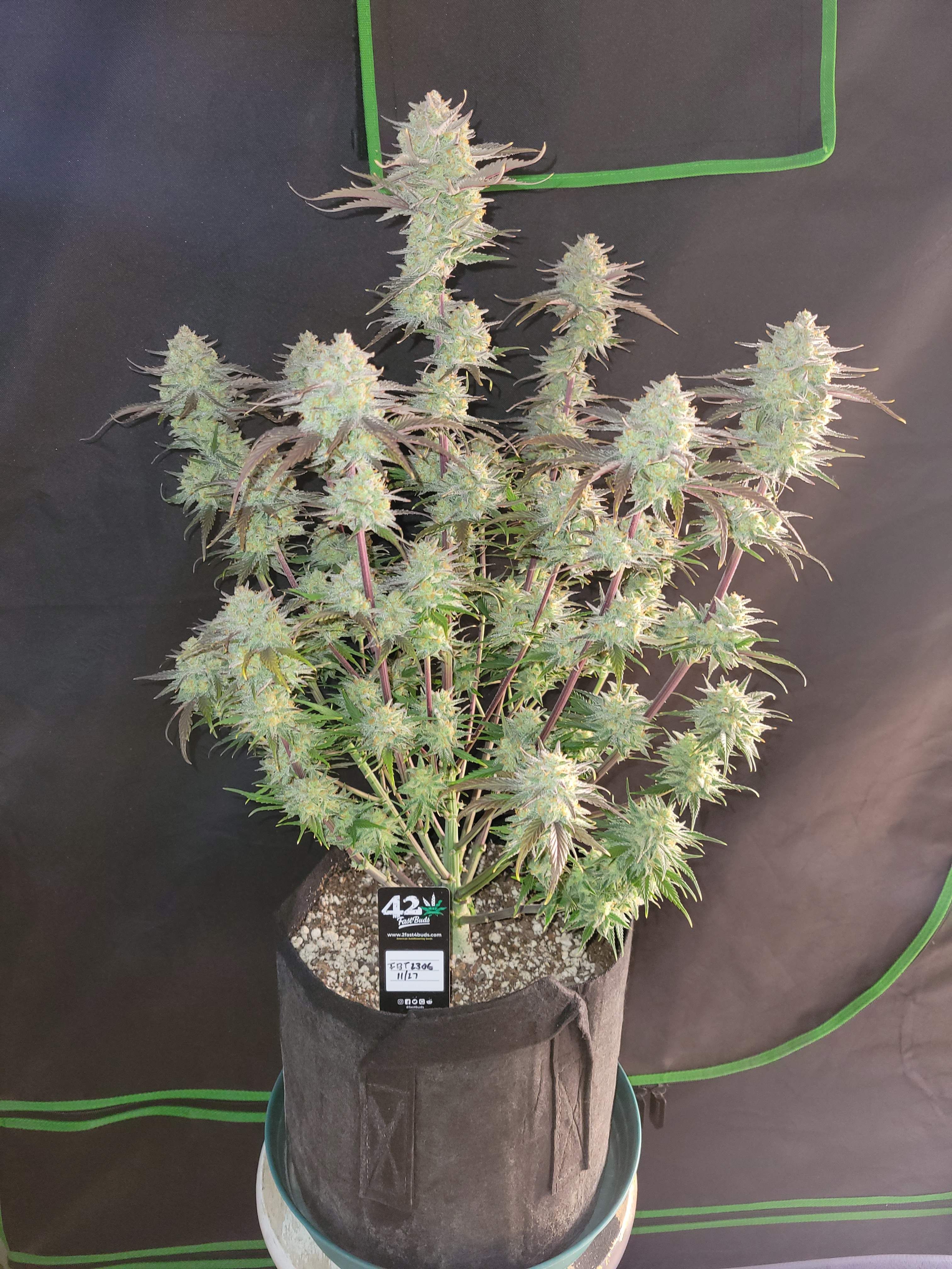 Благодаря своей генетике Apple Strudel Auto™ развивает короткие междоузлия и относительно короткое боковое ветвление, что придает ему компактный вид, несмотря на высоту в 120 см. По мере завершения цикла роста сочные зеленые листья постепенно приобретают потрясающую смесь желтых, оранжевых и красных оттенков, создавая зрелище, напоминающее яркие краски осени в палатке для выращивания. Эта завораживающая визуальная трансформация добавляет очарования опыту выращивания этого автоцветущего сорта.