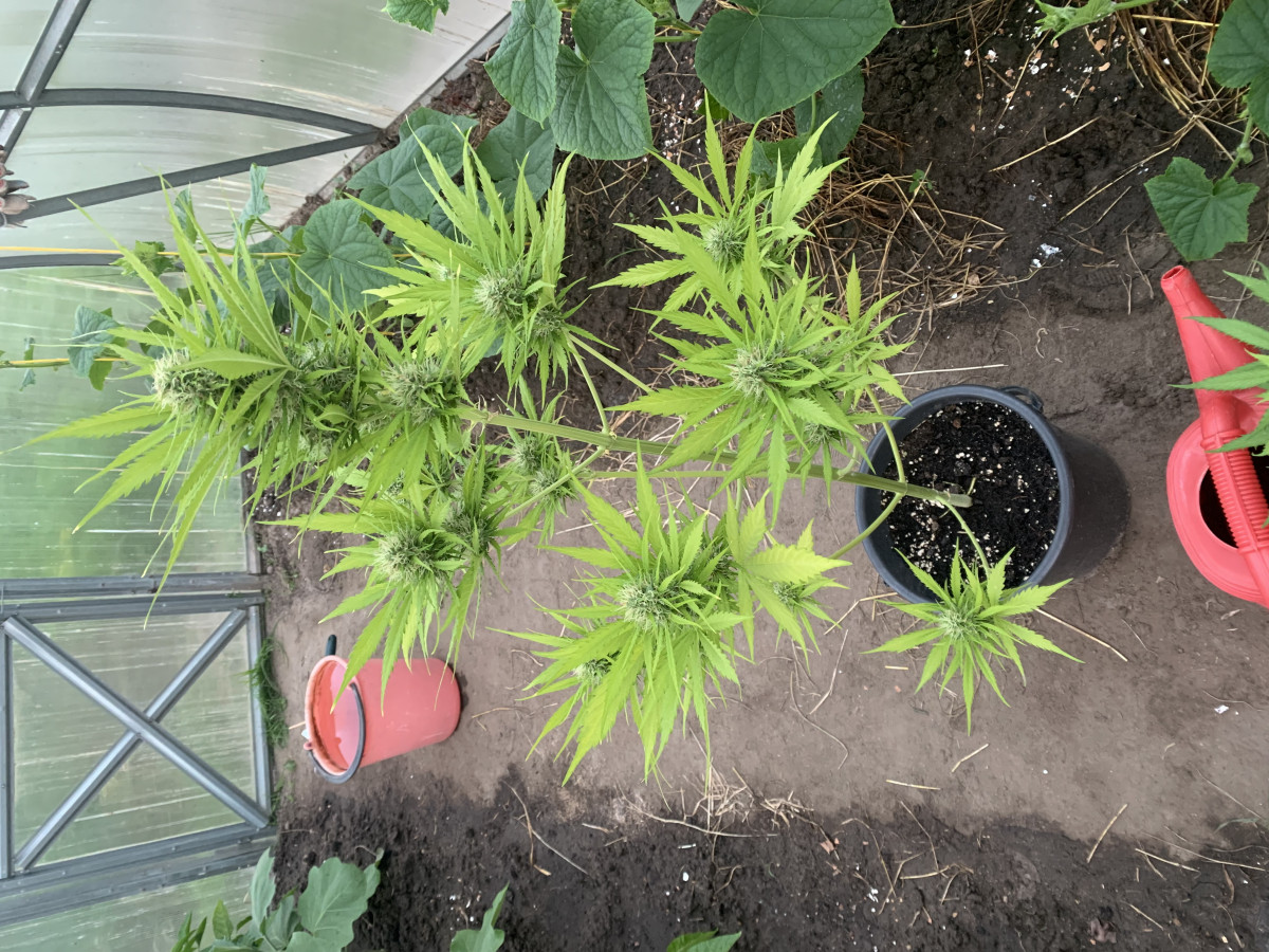 И так, вкратце, дамы и господа. Высадил наконец-то орешек, сутки промочил, проростил, зарядил в 10-ти литровое ведро с грунтом terravita перлит и без угрызения совести поселил ,,бандитку,, в казарме. Из рациона только водопроводная вода, никаких подкормок, утром двери открыл, на ночь закрыл а так-же утренние и вечерние поливы, на этом все. Начала издавать фруктовые ароматы в перемешку с плановыми. Рост примерно 110 см. Девчонка не избалованная, комфортно стоит себе, трет о чем-то с огурцами. Вынес 28 апреля, фото 25 июня, климат- центральная РФ. О свойствах говорить не буду, поднимал ее не раз, а вот именно на таких условиях впервые.Стоит еще Super lemon haze на той-же диете, но это уже другая история.