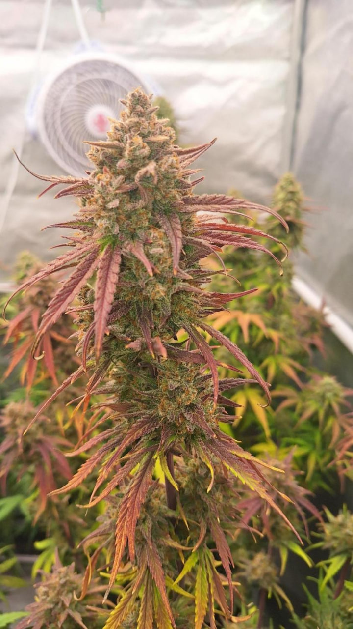 Frostbanger auto - это суперпотенциальный, суперморозный, тяжелый автоцвет с преобладанием индики и средним содержанием ТГК 29,5%. Она остается компактной, распускается к четвертой неделе и быстро дает умеренный урожай плотных, тугих, пропитанных смолой бутонов, которые сверкают, как свежий снег в искрящейся зимней стране чудес. Созданный для ценителей, жаждущих трихомов нового уровня, сорт Frostbanger Auto отличается высокой устойчивостью, что означает, что его легко выращивать как новичкам, так и людям с многолетним опытом. Ее компактная структура идеально подходит для тесных помещений, где она достигает высоты 70-120 см. Имейте в виду, что этот сорт обладает очень сильным резким запахом, поэтому для маскировки аромата в любой комнате для выращивания обязательно нужен угольный фильтр, а при выращивании на улице он будет давать о себе знать. Вы можете ожидать здорового урожая от этой трихомовой красавицы, которая, как известно, дает 450-550 гр/м2 в помещении и 60-200 гр/растение на открытом воздухе. При курении блестящих цветков Frostbanger образуется ровный, ультрагустой пар, который плавно перекатывается по нёбу со сладким, сливочным фруктовым вкусом, почти сразу же вызывая мощную волну спокойного расслабления, которая оседает глубоко в теле. Это идеальный сорт для вечернего употребления, расслабления в конце дня или для того, чтобы просто испытать безмятежное физическое блаженство и безграничное спокойствие.