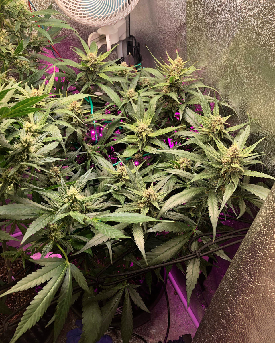 Начну с того, что у меня не было места в палатке, и я все равно хотел посадить его в маленький горшок, просто чтобы посмотреть, какая у него генетика... ну, я пожалел, что не поместил его в большой горшок!!! Шишки потрясающие, классический запах Гориллы, но с изюминкой! Бутоны расположены снизу-вверх и имеют поистине уникальную плотность! Терпены сочные и очень ароматные, красивые густые оранжево-красные волоски покрывают иней бутона! Урожай составил 51 грамм, серьезно высшего качества! И самое приятное то, что в общей сложности им потребовалось всего 10 недель! Когда я выкурил первый тестовый бутон, я был поражен, плечо было тяжелым, в голове гул и расслабление от мизинца ноги до последнего волоска! Определенно сорт, который в следующий раз можно будет повторно вырастить в приличном горшке, возможно, с использованием органических удобрений, чтобы посмотреть, как пойдет!