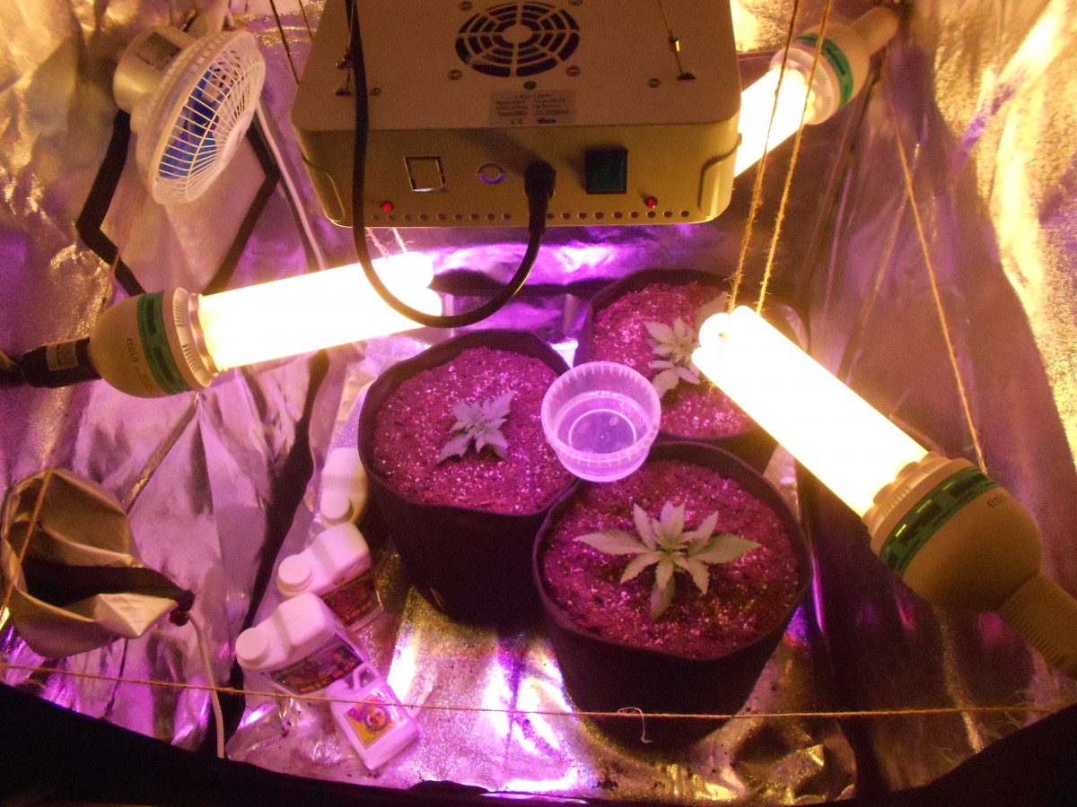 Кустик хорошо себя чувствует в небольшом гроу-боксе с освещением ЭСЛ в 4 лампы (2шт. 2700к по 17w(~75w), 2шт. 6400к по 12w(~65w)), вентиляция - компьютерные кулеры 12мм один на вдув снизу, другой - на выдув сверху). Не знаю, сколько ещё до грова, будем посмотреть на даььнейшее разаитие)) Но пока всё хорошо.