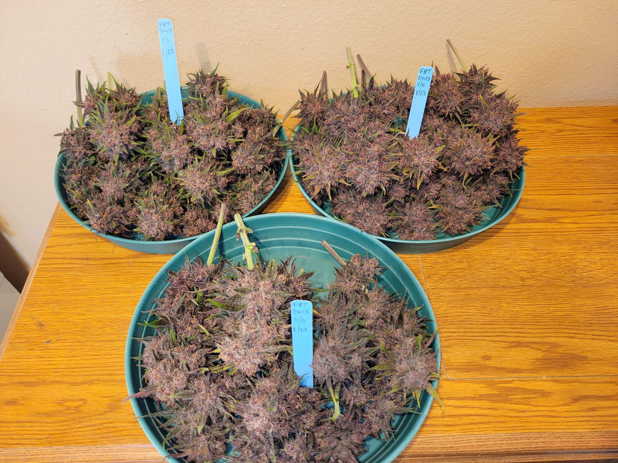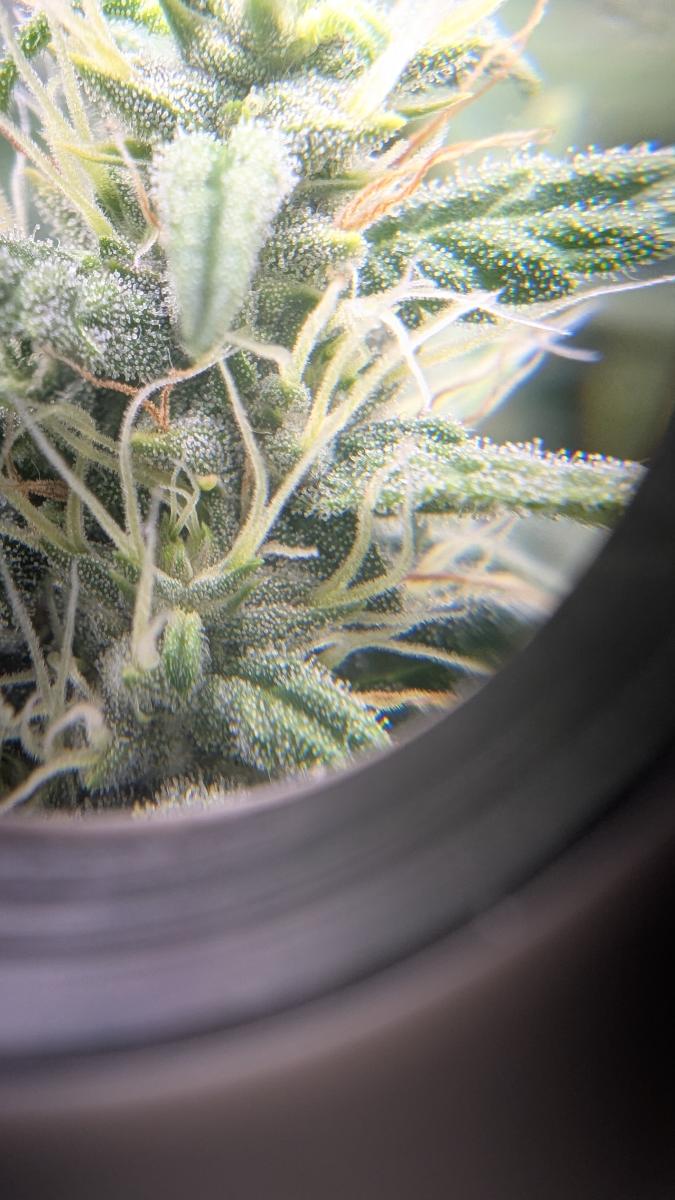 Абсолютный чемпион во всём, кроме объема. Неприхотлив, реально 8 недель до 50% янтаря под лупой, и валит уже, покруче большинства, всего через 7 недель от каски. Даже запах, далеко не самый сильный, проявляющийся только на поздней стадии, да и какой он, мёдово-фуктовый с нотками всеми любимой зелени. Фиолетовые прожилки - да, конечно только прожилки и внутренняя часть цветов, а не весь фиолетовый как это бывает с другими фиалками.