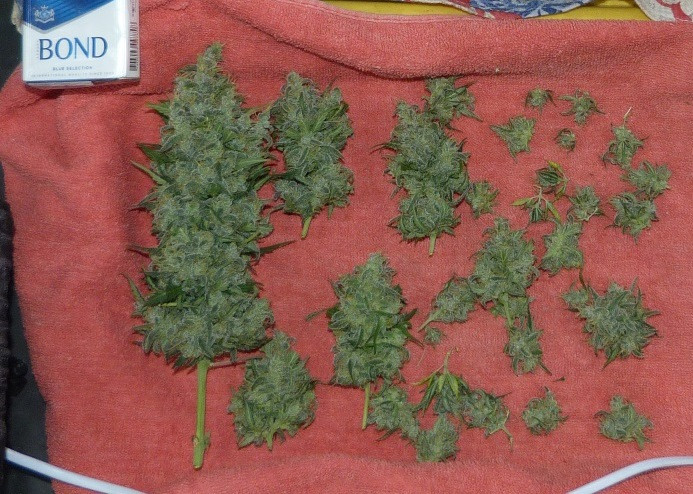 Как и все сативы, капризная. Был перебой со светом на сутки, и она остановилась в росте (хотя Crystal Meth, росла в том же боксе, как будто даже и не заметила ничего). Получился карлик высотой 35 см. Но для такого карлика урожай удалось собрать вполне приличный.