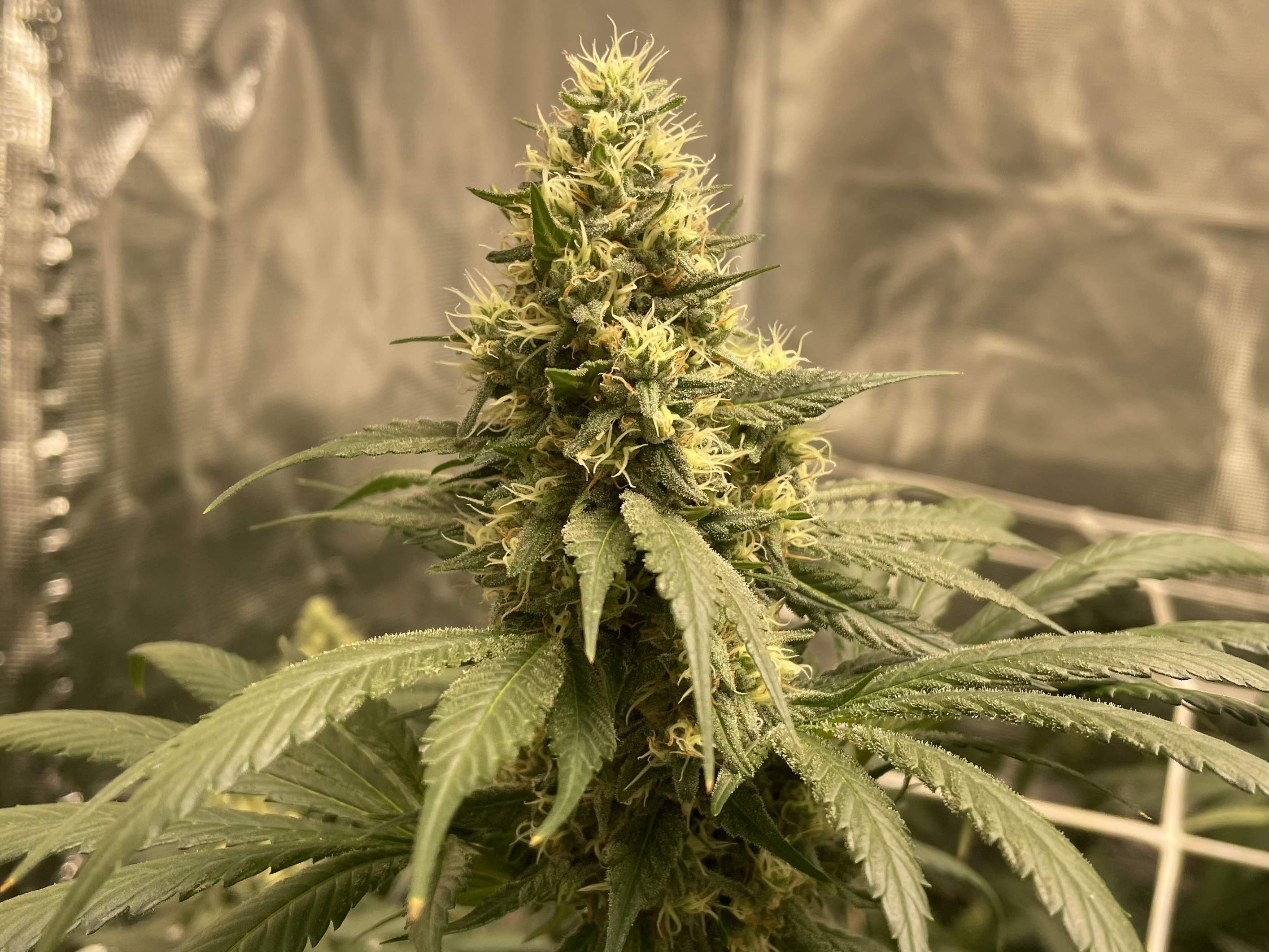 Неприхотливый, быстрый - цветение занимает 8-9 недель. Этот гибрид с минимальным преобладанием сативы (60/40) растет до 160-180 см в высоту и способен выдать урожай 800 г/растение. Высокий уровень ТГК - 28%. Отличный вариант для расслабленного отдыха и творчества.