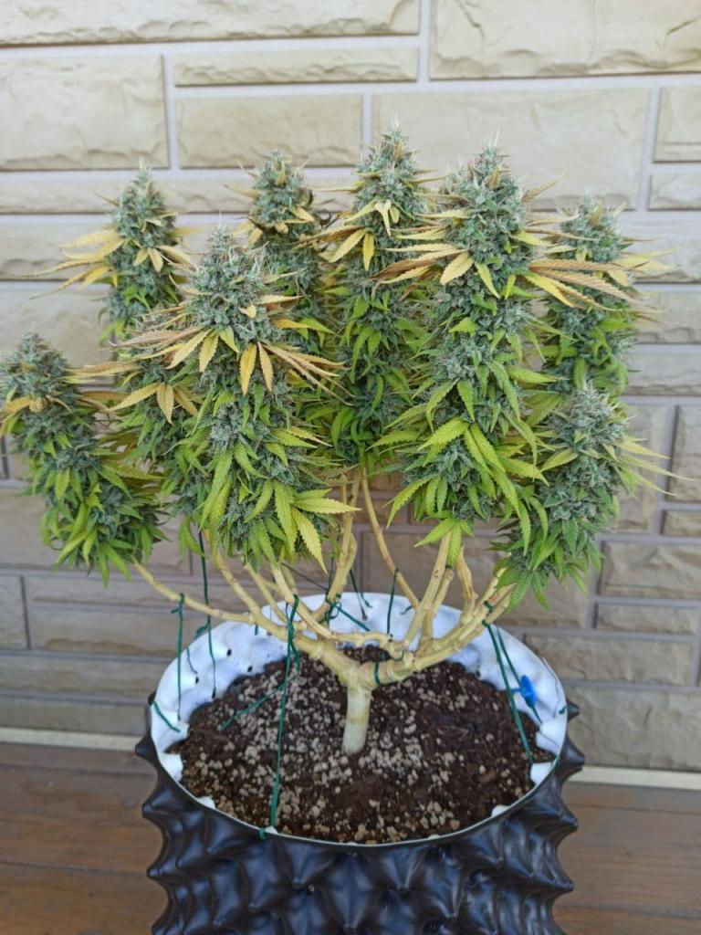 Gorilla Zkittlez сативо-доминантный гибрид с пышной кроной и крепкими ветками. На цветении шишки покрываются белыми стигмами, а соцветия становятся, как одуванчики, наполненные множеством кристаллов THC. Если потереть стебель руками, вы почувствуете яркий запах кислого скитлса, шишки имеют такой же запах и вкус при курении.