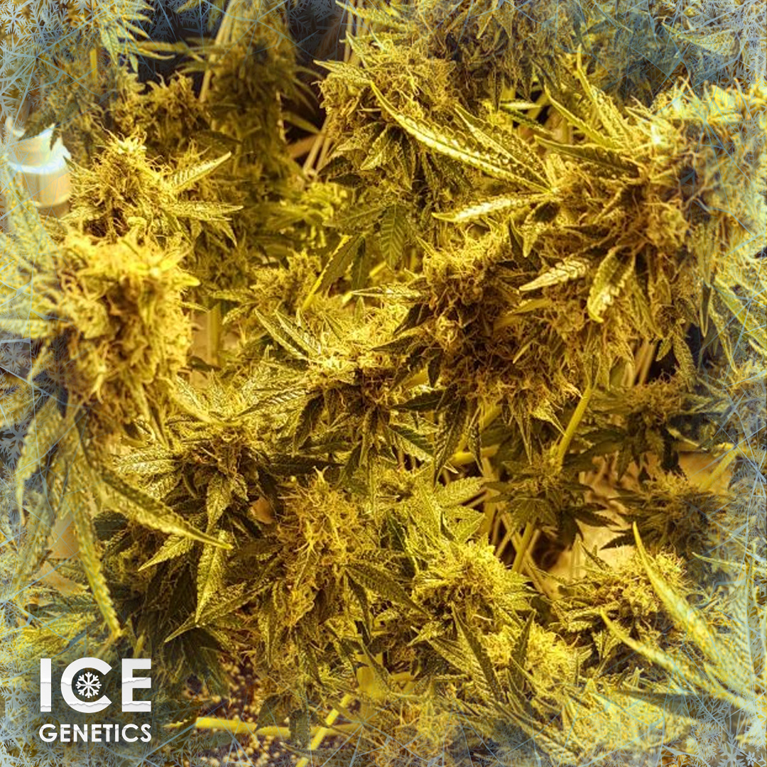 Явные преимущества штамма – высокая урожайность, слабый запах, ускоренное цветение и высокая концентрация THC доходящая до 27%! Имеет сативные гены и розоватый оттенок шишек на финише.