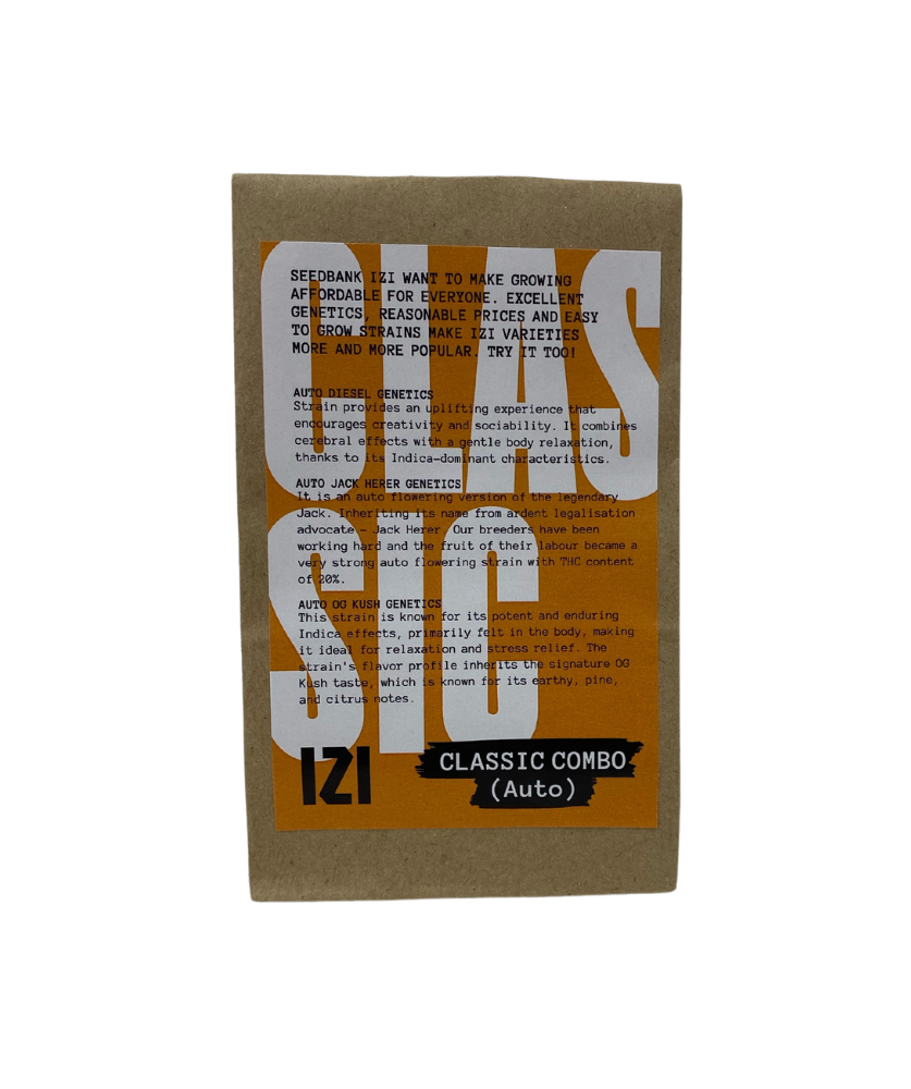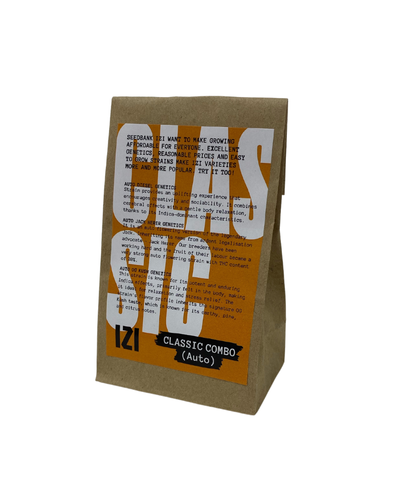 Приветствуем второй выпуск IZI COLLECTION. Напомним, что IZI COLLECTION – это выгодные комбо-наборы. В набор входит три упаковки феминизированных сортов каннабиса в фасовке 3+1. Покупая набор IZI COLLECTION, ты сможешь опробовать три сорта с экономией в 20%! CLASSIC COMBO - включает в себя три самых классических сорта: