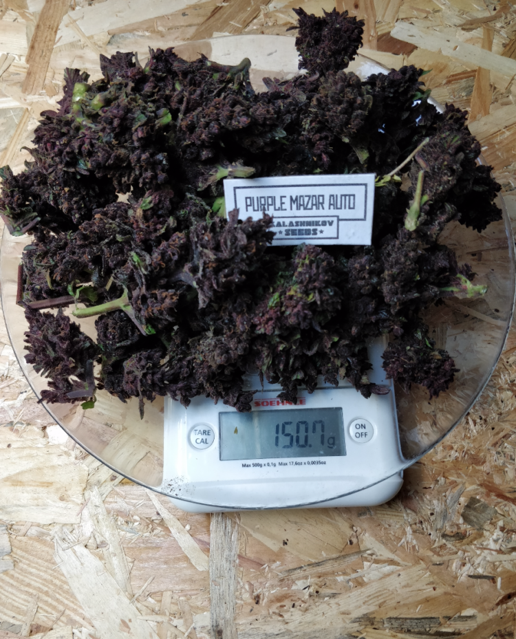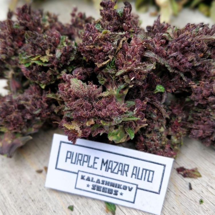 Куст обычно достигает 60 – 70см в высоту, образуя крупную пурпурно-фиолетовую центральную шишку, окруженную ярко-зелеными листьями. Из-за этого удивительного контраста цветов, Purple Mazar Auto невозможно спутать ни с одним другим сортом.