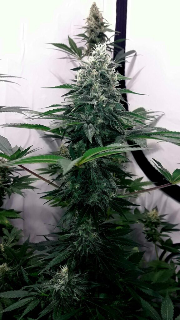 В помещении, как мы говорим, лучше всего выходить из фазы роста, когда она достигает 60 или 70 сантиметров. После фазы цветения, длящейся от 55 до 60 дней, вы поймете, почему мы рекомендуем его дрессировать или укреплять. У него небольшое нижнее разветвление (обрежьте его, если хотите создать побег), а огромные листья и необычные бутоны, появляющиеся на верхушке, могут привести к сгибанию растения. Черенки можно брать довольно легко. При оптимальных условиях вы соберете около 500 граммов с квадратного метра, так что мы можем сказать, что цель по производительности более чем достигнута.