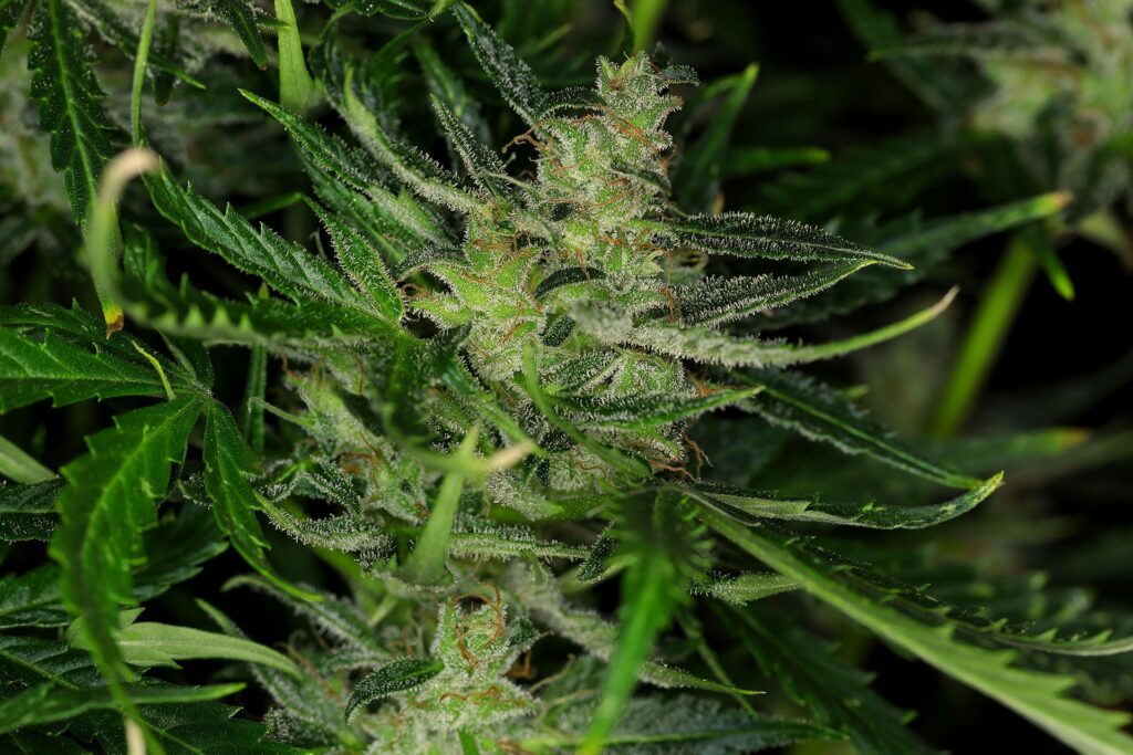 Короткое расстояние между междоузлиями (как и следовало ожидать), заостренные листья, которые прорастают во всех направлениях, круглые компактные бутоны, бесчисленное количество трихом, покрывающих растение. Звучит заманчиво, и это правда.