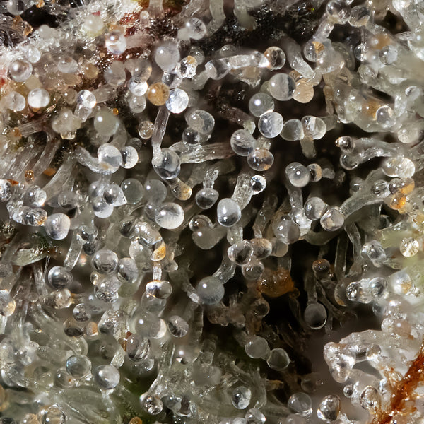 С точки зрения внешнего вида, Cherry Runtz выделяется своими яркими фиолетовыми тонами, которые украшают шишки и листья. Сами шишки, как правило, компактные и плотно упакованные, демонстрируя генетическое влияние его родительских сортов. Что касается аромата, Cherry Runtz предлагает захватывающий обонятельный опыт. Он источает сливочную сладость с нотами тропических фруктов и оттенком газа, создавая соблазнительный и уникальный аромат, который отличает его от других сортов. Cherry Runtz не только впечатляет своим внешним видом и ароматом, но и доказал свою ценность на конкурентной сцене каннабиса. С впечатляющим послужным списком, выиграв 12 кубков на национальных конкурсах, он укрепил свою репутацию первоклассного сорта. В целом, Cherry Runtz — замечательный сорт каннабиса, который сочетает в себе лучшие качества своих родительских сортов, обеспечивая потрясающий внешний вид, восхитительный аромат и исключительный уровень ТГК.