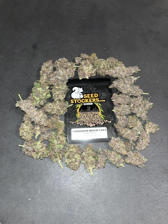 Forbidden Mochi Fast Fem от Seed Stockers — быстрорастущая версия своего сорта Forbidden Mochi. Это феминизированный сорт с периодом цветения 6-7 недель, обладающий цитрусово-мандариновым ароматом. Он создан на основе двух американских сортов: гибрида Mochi Gelato с генетикой Cookies из США и отбора Forbidden Fruit (Cherry Pie x Tangie).