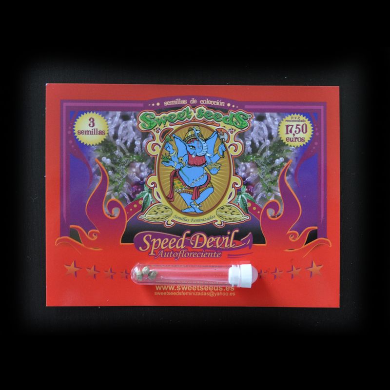 Speed Devil были разработаны Sweet Seeds, при выведении данного сорта предпочтения отдавались начинающим садоводов, тем, кто не столь опытен с канабисом, но тем не менее хотел бы получить отличный результат и насладиться процессом. Speed Devil – результат скрещивания лучших автоцветущих генетик. Планты сорта Speed Devil обладают коротким периодом цветения, и уже через 60 дней после посадки готовы к харвесту. Speed Devil не привередлив в выращивании – растения имеют иммунитет к различного рода грибкам и заболеваниям. Так же, Speed Devil не нуждается в каком то специальном питании , как некоторые из штампов, еженедельный полив удобрениями, как правило, является достаточным для их полноценного развития. Speed Devil подходит как для открытого , так и для закрытого грунта, и где бы вы ни решили выращивать этот сорт, результат будет тот же: большое количество смол и ароматных соцветий. При курение Speed Devil дает сладкий мускатный аромат. Так же активно используется в медицинских целях. Отлично снимает стресс и борется с депрессией.