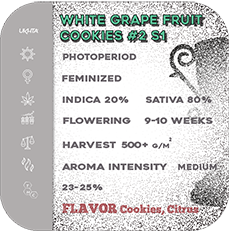 White Grapefruit Cookies #1 – это более сативный фенотип с мощным цитрусовым ароматом. Всего у этого сорта два фено, и для нашего гибрида выбрали вариант с кисло-сладкими цитрусовыми нотками. Шишки фиолетовые с коричневым оттенком, а аромат просто бомбический – насыщенный и уверенный. По интенсивности запаха – 7 из 10.